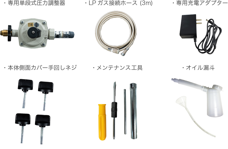| 使用燃料 | LP ガス/ レギュラーガソリン |