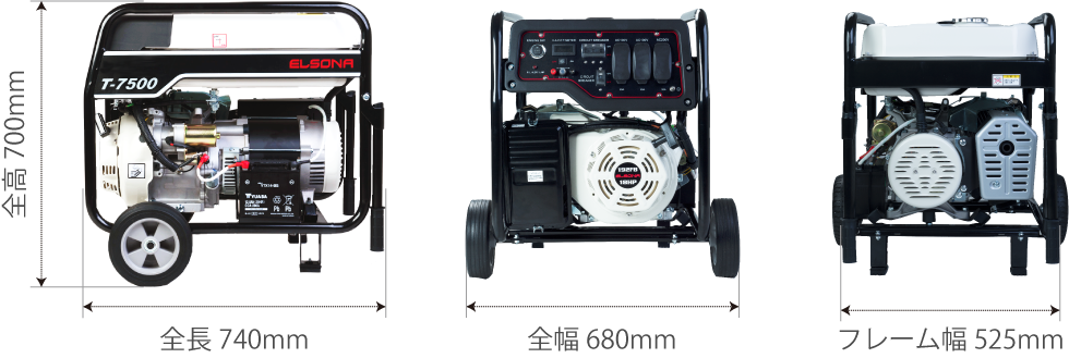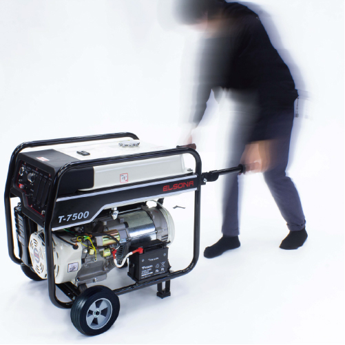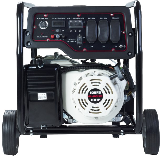 大きなキャスター、ハンドル付きなので移動の際もスムーズに。最大7.5kVA出力。出力に余裕があり、オフィスや家庭の大部分の電力をカバーできます。